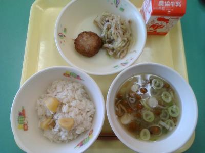 秋の味覚の代表とも言える「栗」。ホクホクと美味しいですね。今日の主食は「栗ごはん」です。
