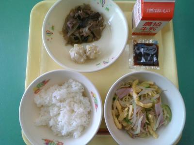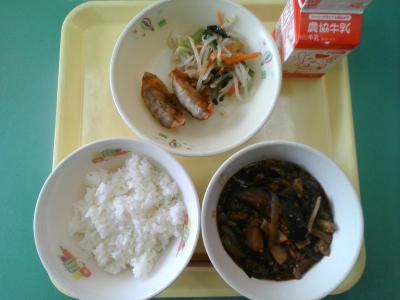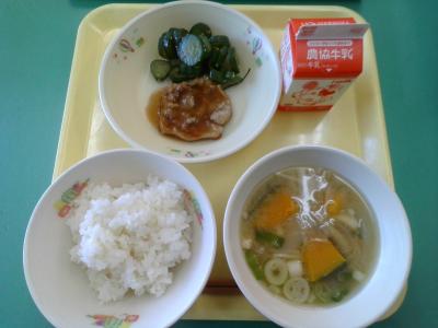 今週は七夕献立からスタート!ハンバーグ、とりにくスタミナ焼き、魚のカレー焼きなどパワーがつきそうなメニューや、ひやむぎ、ブロッコリーとツナのレモンマヨサラダ、きんじそうの酢の物などのさっぱりしたメニューなど、暑さで食欲減退気味の毎日を乗り切る献立を考えてくださっていますね。
