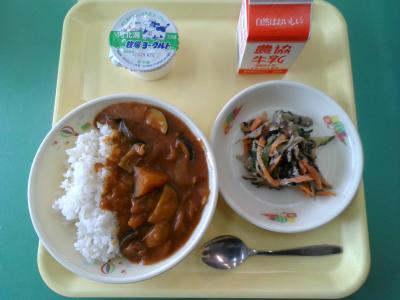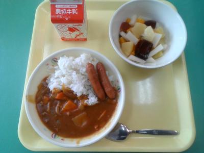 2学期が始まり、給食も今日からスタートです。今日のメニューはみんな大好きカレーです。デザートは梨のフルーツカクテルです。