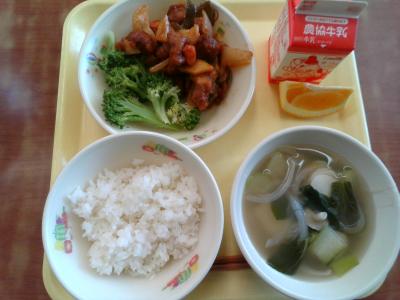 今週は七夕献立からスタート!ハンバーグ、とりにくスタミナ焼き、魚のカレー焼きなどパワーがつきそうなメニューや、ひやむぎ、ブロッコリーとツナのレモンマヨサラダ、きんじそうの酢の物などのさっぱりしたメニューなど、暑さで食欲減退気味の毎日を乗り切る献立を考えてくださっていますね。