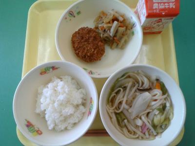 今日の給食は「富山県献立」です。昨日の「ケンミンショー」でも氷見うどんのことが紹介されていましたね。