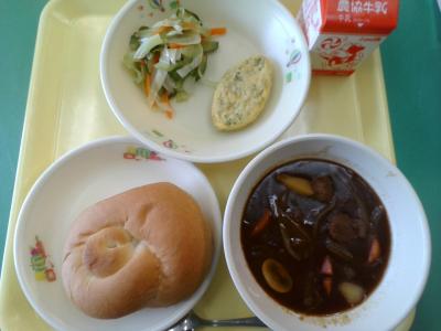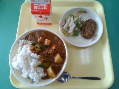 今日はみんなが大好きなカレーです。具材にはたけのことアスパラガスが入っています。
