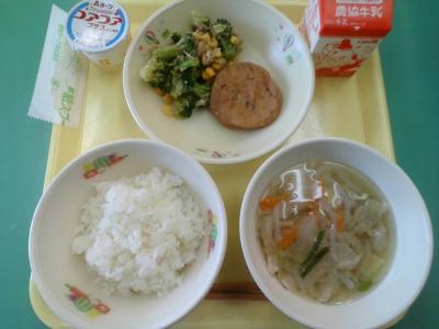 今週は七夕献立からスタート!ハンバーグ、とりにくスタミナ焼き、魚のカレー焼きなどパワーがつきそうなメニューや、ひやむぎ、ブロッコリーとツナのレモンマヨサラダ、きんじそうの酢の物などのさっぱりしたメニューなど、暑さで食欲減退気味の毎日を乗り切る献立を考えてくださっていますね。