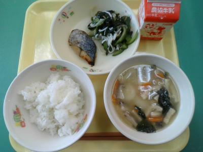 今日は久しぶりの給食です。豚肉の美味だれ(おいだれ)はしょうが、にんにく、りんごが入ったたれがかかっていて、ご飯にぴったりです。