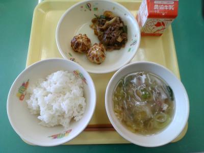 今日から1年生の給食が始まります。美味しく食べることができたかな。