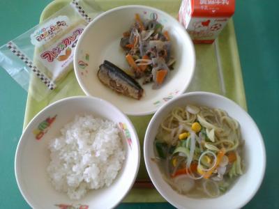 今週は七夕献立からスタート!ハンバーグ、とりにくスタミナ焼き、魚のカレー焼きなどパワーがつきそうなメニューや、ひやむぎ、ブロッコリーとツナのレモンマヨサラダ、きんじそうの酢の物などのさっぱりしたメニューなど、暑さで食欲減退気味の毎日を乗り切る献立を考えてくださっていますね。