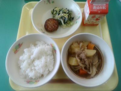 今日の肉じゃがは韓国風だそうです。味付けにごま油が使われています。
