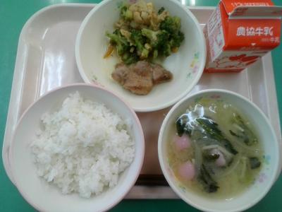 加賀市はブロッコリーの出荷量が北陸で一番の産地です。今日はそのブロッコリーとそぼろがかかったごはんです。
