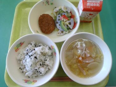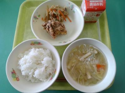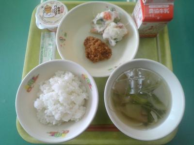 今日は、みんなが大好きな鶏のからあげです。下味のしょうがアクセントとなってとても美味しかったです。