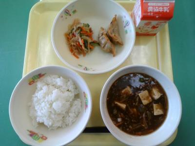 今日は中華メニューです。マーボー豆腐は体が温まりますね。