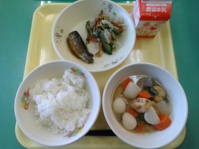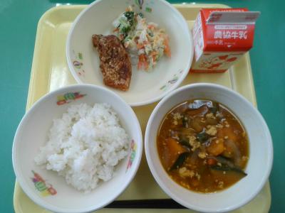 今日のカレーは,さつまいもやしょうが,れんこんなどが入った冬野菜カレーです。