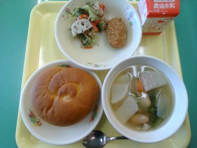今日11月17日はれんこんの日だそうです。茨城県でれんこんサミットが開かれたこの日を記念して、制定されたそうです。今日はブロッコリーとのサラダです。れんこんのシャキシャキ食感を味わってください。