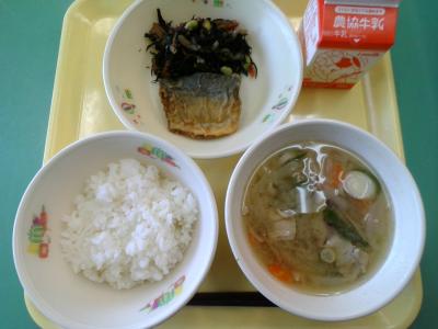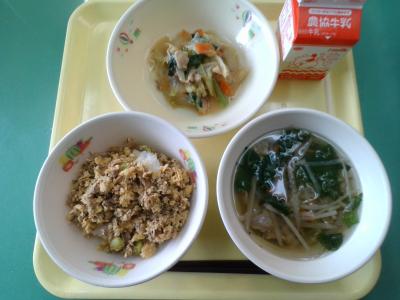 今日は、さばと炒り卵を使ったお魚のそぼろごはんです。しょうがや枝豆も入り、美味しくいただきました。