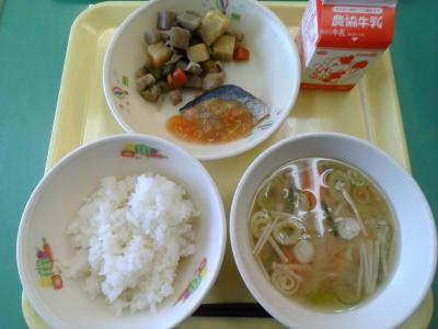 今日の給食は「紅葉狩りの献立」です。ソースやにんじんの色が紅葉を想像させますね。