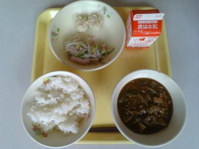 今週は七夕献立からスタート!ハンバーグ、とりにくスタミナ焼き、魚のカレー焼きなどパワーがつきそうなメニューや、ひやむぎ、ブロッコリーとツナのレモンマヨサラダ、きんじそうの酢の物などのさっぱりしたメニューなど、暑さで食欲減退気味の毎日を乗り切る献立を考えてくださっていますね。