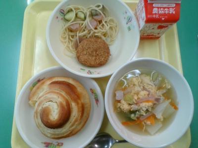 7月7日(月)は七夕献立でした。豪華なひやむぎや、かわいい星形ハンバーグ・星形ゼリーが登場しました!!とっても素敵な給食、見るだけで暑さも吹っ飛びますね。