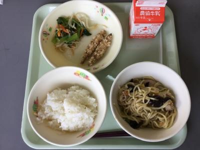今週は七夕献立からスタート!ハンバーグ、とりにくスタミナ焼き、魚のカレー焼きなどパワーがつきそうなメニューや、ひやむぎ、ブロッコリーとツナのレモンマヨサラダ、きんじそうの酢の物などのさっぱりしたメニューなど、暑さで食欲減退気味の毎日を乗り切る献立を考えてくださっていますね。