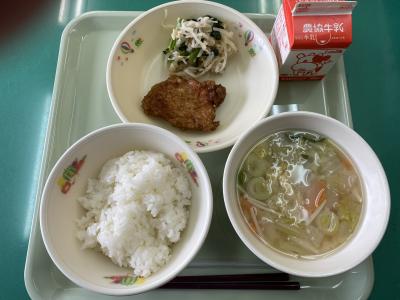 今週は七夕献立からスタート!ハンバーグ、とりにくスタミナ焼き、魚のカレー焼きなどパワーがつきそうなメニューや、ひやむぎ、ブロッコリーとツナのレモンマヨサラダ、きんじそうの酢の物などのさっぱりしたメニューなど、暑さで食欲減退気味の毎日を乗り切る献立を考えてくださっていますね。