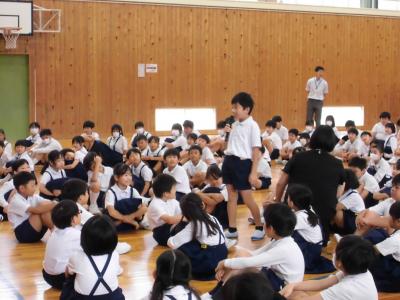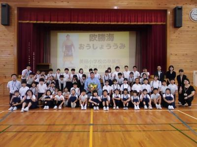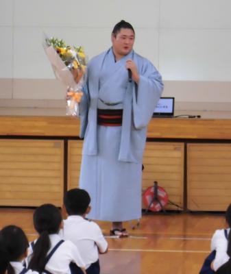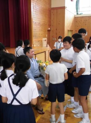 10月1日(水)に英田小学校の先輩にあたる欧勝海関が学校を訪問してくれました。