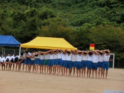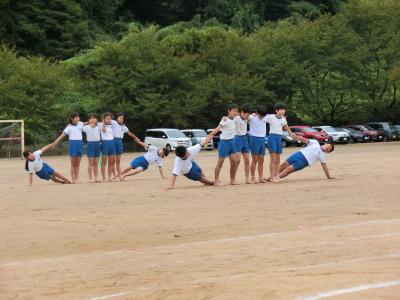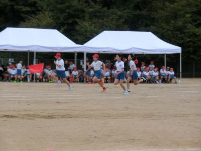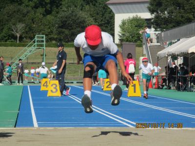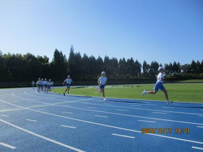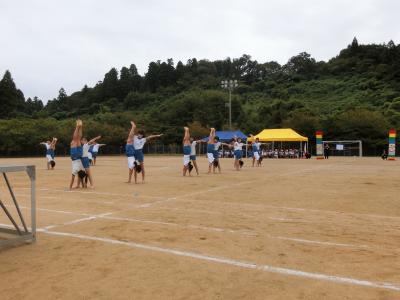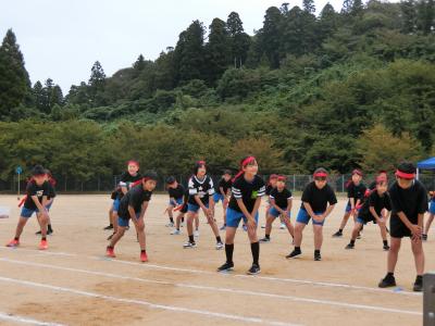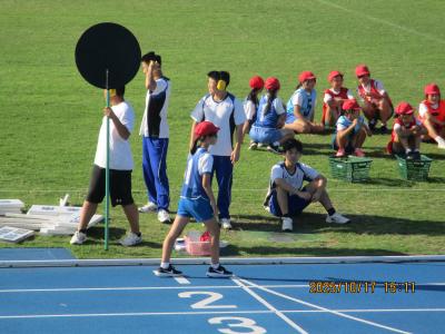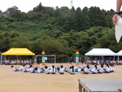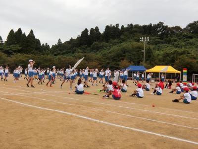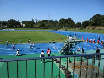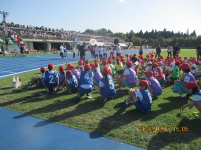 清々しい秋晴れの中、津幡町の立派な陸上競技場で、他校の同級生と競技や演技ができたことはとても良い経験になったようです。