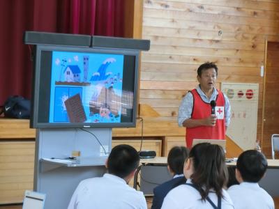 当日は日本赤十字社石川支部の北村裕一さんを講師としてお迎えし、災害時に大切なことや対応グッズの使い方などを教えていただきました。