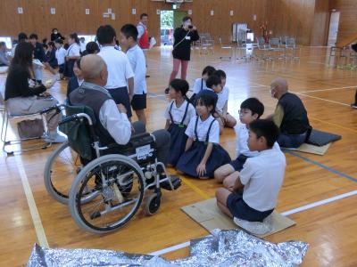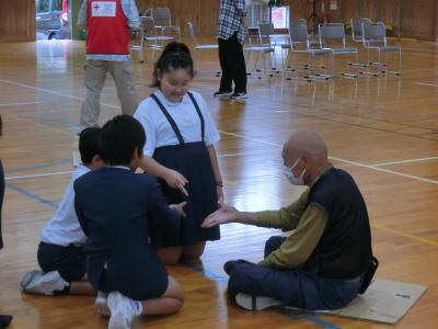 最後に避難している方への声かけ体験をして、避難所で子供たちが力になり、たくさんの人たちを励ますことができることを学びました。