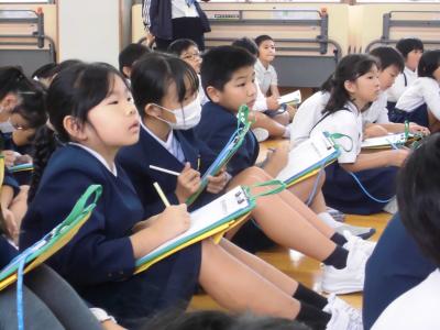 子供たちは熱心にメモを取り、質問もして、一生懸命お話を聞いていました。