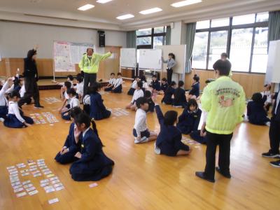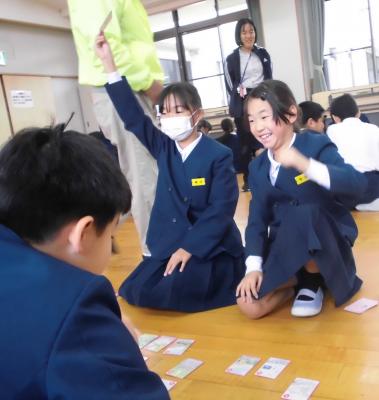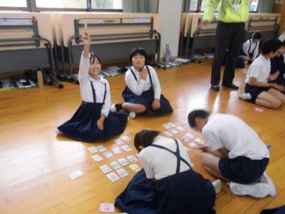 10月22日(水)観光ボランティアガイド「つばたふるさと探偵団」の皆さんにお越しいただき、ふるさと学習の一環として「津幡かるた」を体験しました。