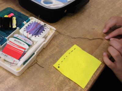 新しい裁縫セットを使って、まずは手縫いに挑戦です。