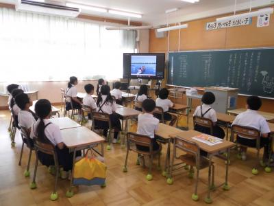 今日の始業式は、体育館が暑くて熱中症の危険があったため、オンラインでお話を聞いてもらいました。