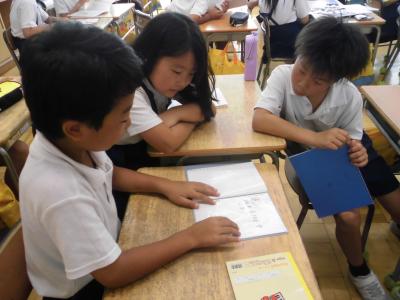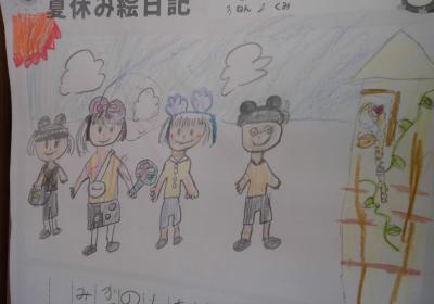 とてもうれしそうに友達と見せ合い、夏休みの思い出を語っていました。