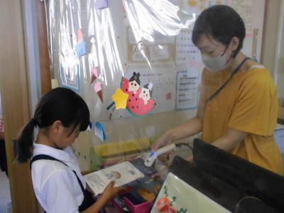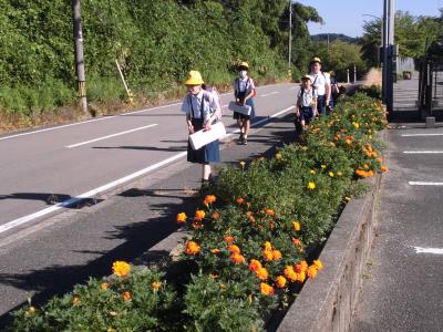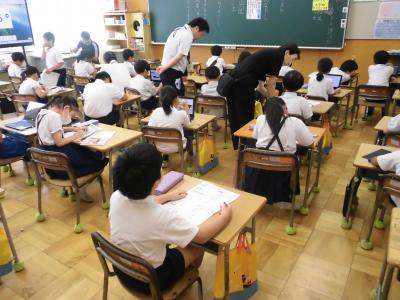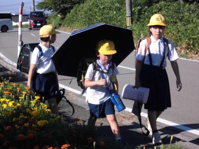 朝からとても暑い中、汗びっしょりになって、たくさんの荷物をもった子供たちが登校してきました。