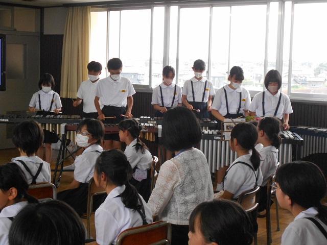 6年生が昼休みに「七夕ミニコンサート」とネーミングした手作りの音楽会をしてくれました。思いもよらないプレゼントに、大喜びの下級生の姿がありました。あっという間に音楽室がいっぱいになり、2回にわたって行われました。音楽の時間に学び、練習した「ラバーズコンチェルト」を披露してくれ、心のこもった音色の重なりと、6年生の真剣なまなざしが心に響きました。