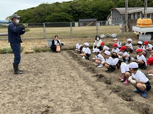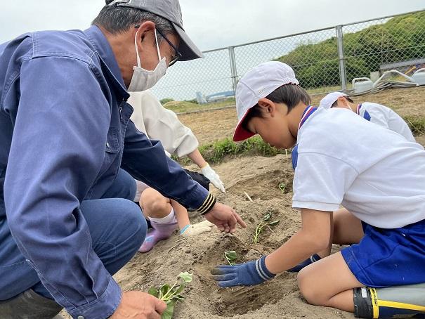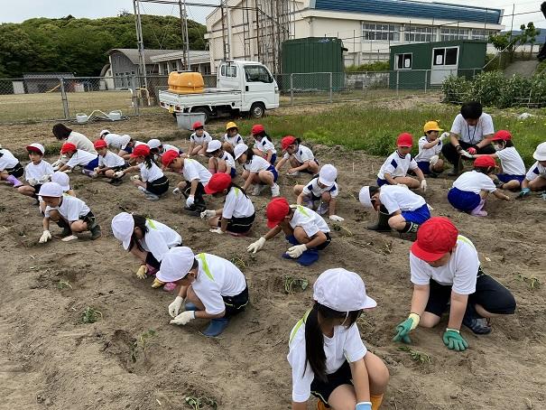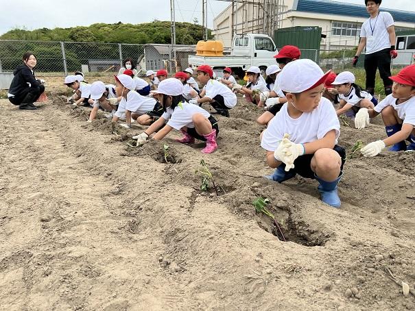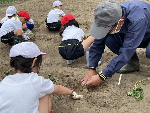 学校ボランティアの山田さんに教えていただき、今年もサツマイモの苗を植えました。色々とお世話いただき、あ