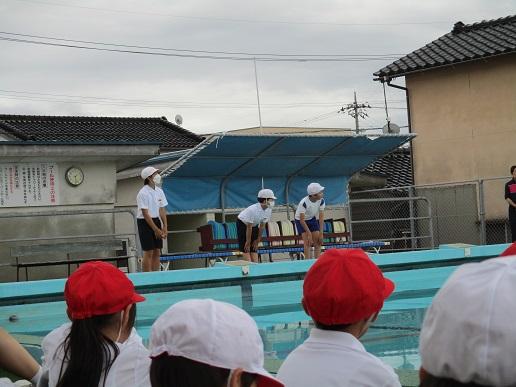 2023年6月14日 12時00分待ちに待った「プール開き」をしました。残念ながら気温・水温が低く、プールに入ることは見送りとなりました。しかし、プールに入るときに気を付けること等を、6年生代表の児童が、動作を交えて、分かりやすく、全校児童に伝えてくれました。安全面に十分に気を付けて、楽しくプール活動に取り組んでいきたいと思います。
