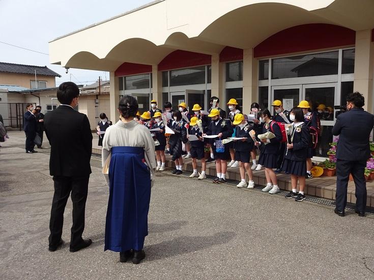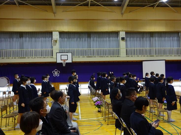 いっぱいの「歓迎の歌」もありました。校歌は「相見音楽隊」の演奏によるものでした。緊張の中にも、期待で胸が