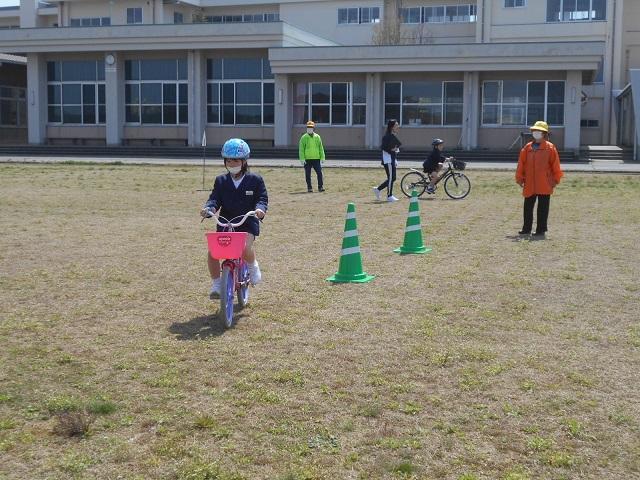 1・2年生は「歩行と交差点の横断について」、3年は「自転車の乗り方について」、実際に体験しながら学習・