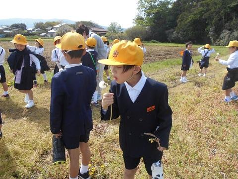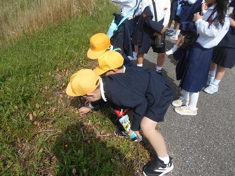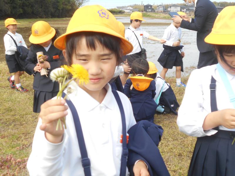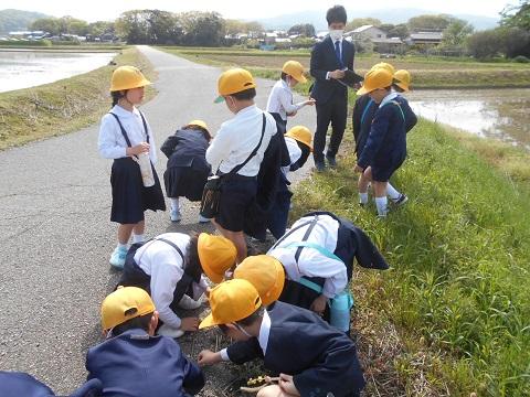 「あんぜんに気をつけて 春を見つけられるかな」を課題に、2年生が学校の周辺を探検しました。子供達のたくさん