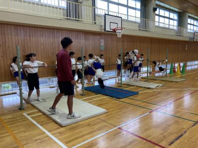 4年生は体育の時間に器械運動に取り組んで来ました。マット運動や跳び箱運動では、一人一人大きな成長が見られています。今日から鉄棒運動の朝練習も始まりました。11月の教育ウイークには発表会を行う予定です。