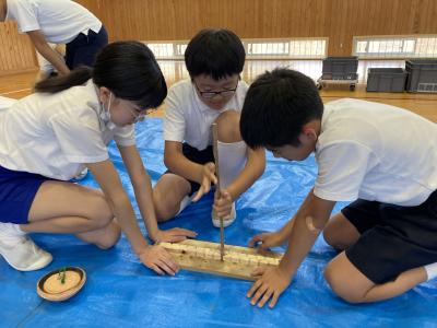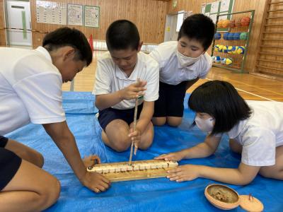 6月20日(木)3・4時間目に、6年生が、埋蔵文化財センターによる「出張考古学教室」を体験しました。石器の切れ味や火起こしを体験し、縄文時代の暮らしに思いをはせた6年生でした。