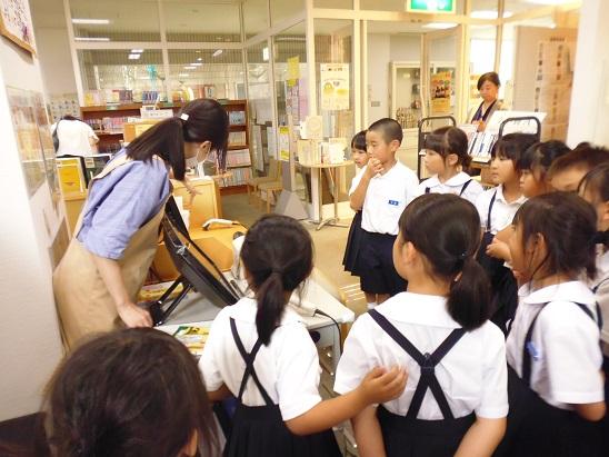 6月27日(木)1年生が町の図書館に出かけました。この日は、宝達小学校と押水第一小学校の1年生も図書館を訪れ、合同で「図書館見学」を行いました。