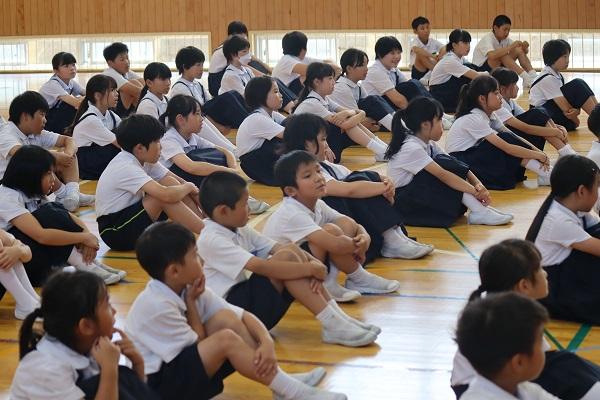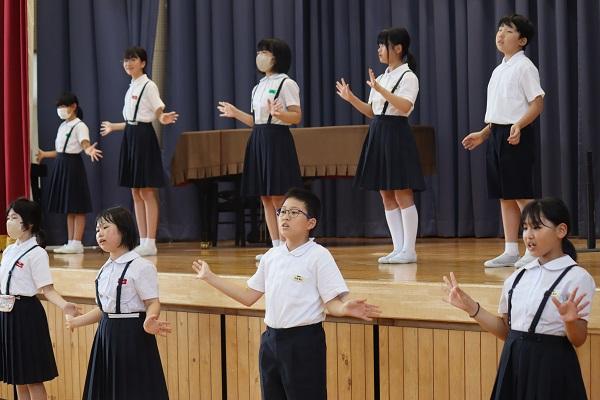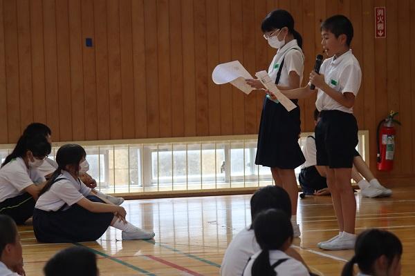 7月1日(月)に児童会主催の「優しさいっぱい集会」が行われました。この集会に先立って子供たちは、お友達に言われてうれしかった言葉やありがとうの気持ちをメッセージカードに書いていました。当日は、各学年の代表児童がカードを読み上げると、発表した子もありがとうと伝えられた子も、またそれを聞いている子供たちも、みんながニコニコうれしそうな表情でした。その後、全員で「虹」を手話付きで合唱し、体育館は温かな雰囲気に包まれました。