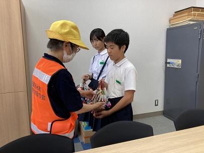 7月11日(木)に交通安全母の会の方々が作ってくださったお守りの贈呈式が行われました。
