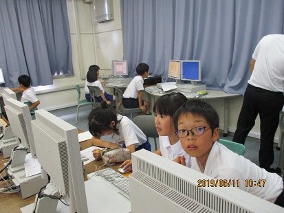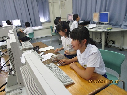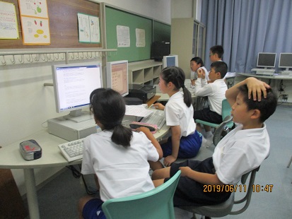 2限目です。4年生がタブレットを使って調べ学習をしています。