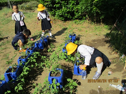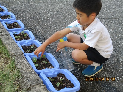 毎朝、1年生と2年生の子ども達は水やりをしています。