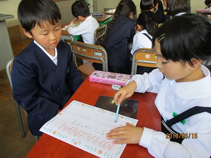 自分の考えを友だちに、自分の言葉で伝えています。