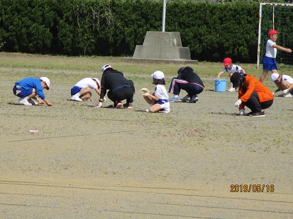 1年生から6年生、教職員合わせて150名の人海戦術です。