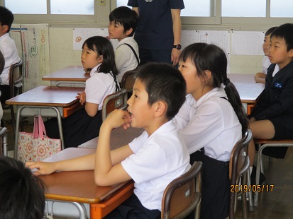 真剣に聞く3年生の子ども達。