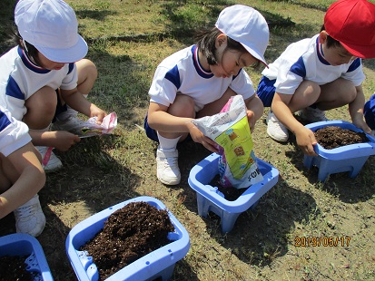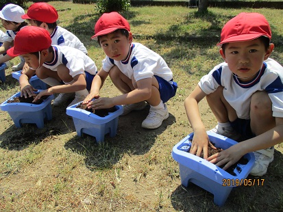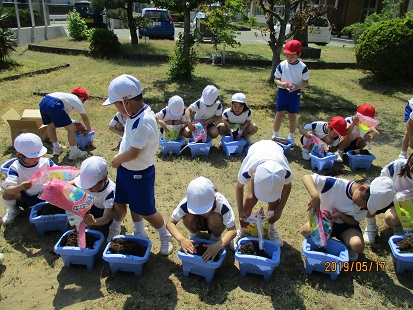 1年生の子ども達17名が、あさがおのたねを植えました。