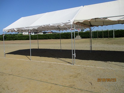 熱中症対策のため、児童用テントを4張り設置してのスタートです。
